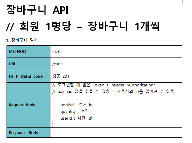 배열의 값을 req body 보내는 법도 배웠으므로 장바구니 API 설계도 혼자 할 수 있음!!