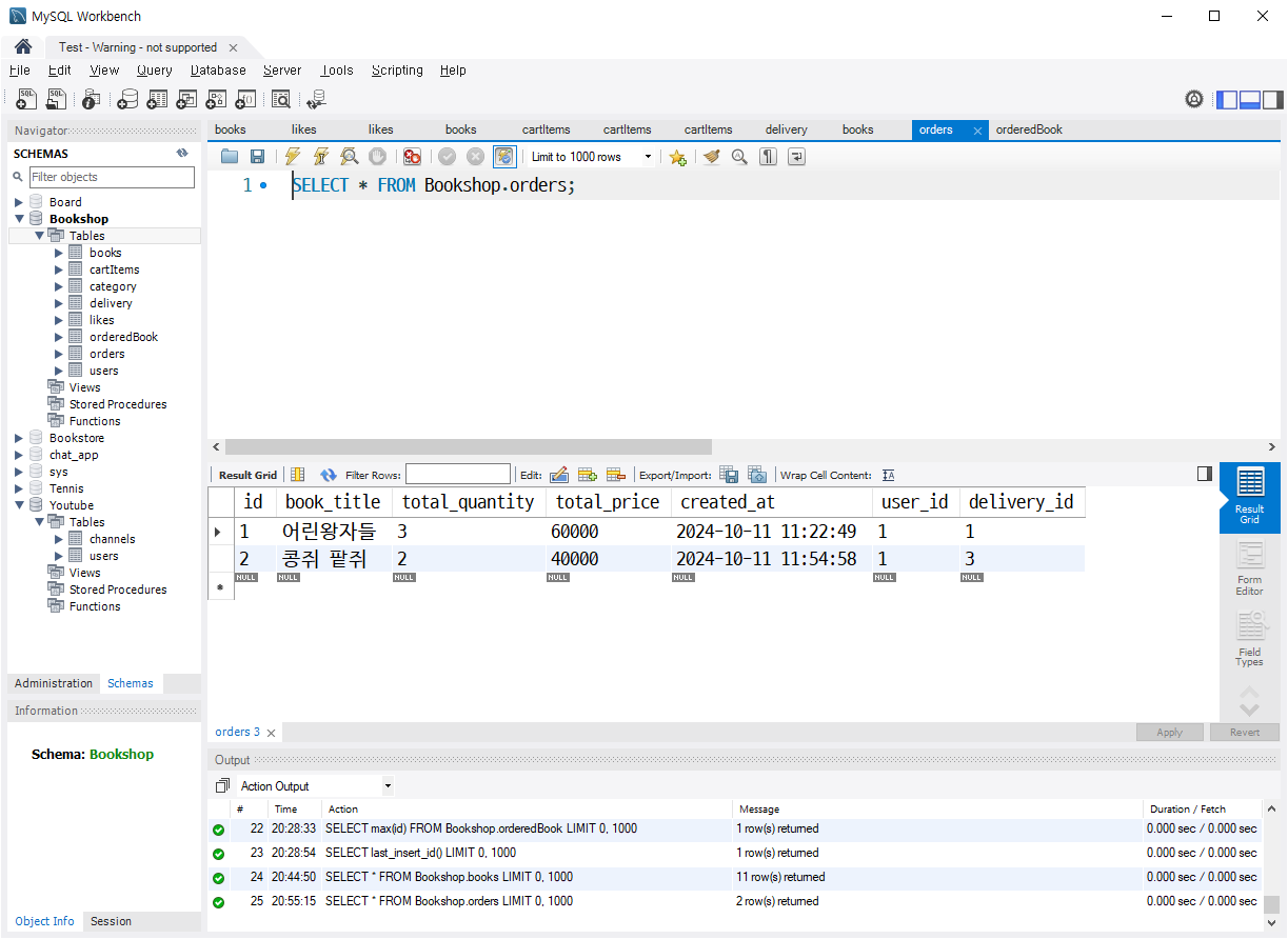API 설계대로 delivery, orders, orderedBook순서대로 insert 쳐주기!